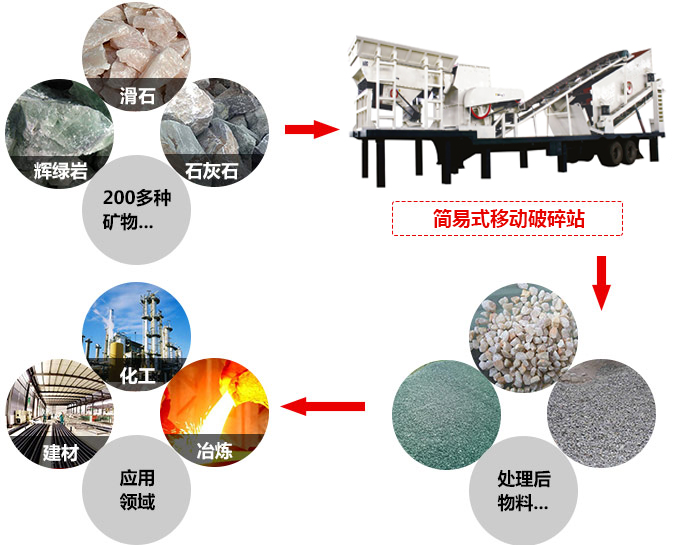 簡易式移動破碎站是移動破碎站的簡易版,主要應用于高速公路、鐵路、機場跑道、礦山、煤礦、建筑、垃圾及建筑垃圾的重復再利用、水電工程、城市基礎設施、道路或建筑工地等需要搬遷,流動性強的作業。